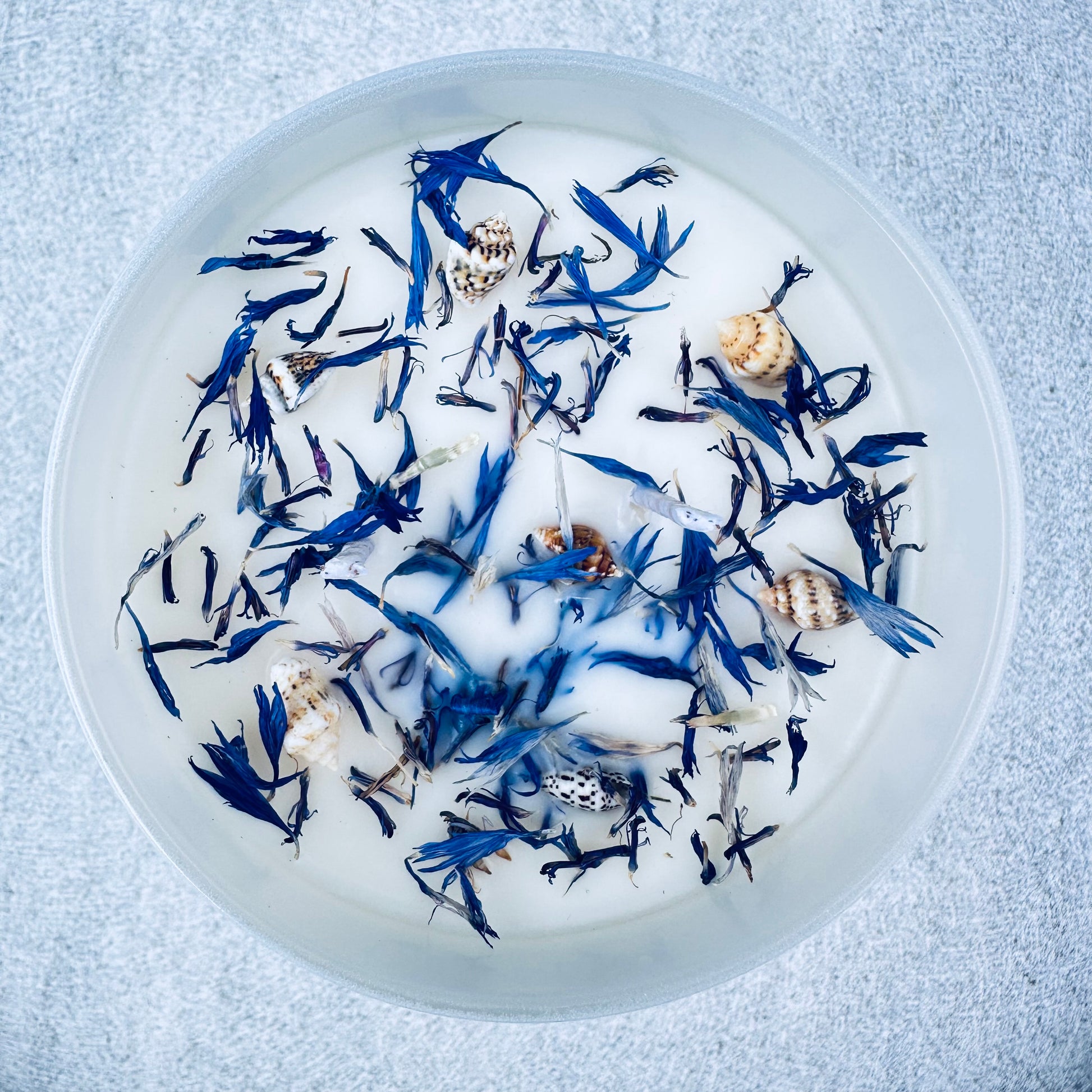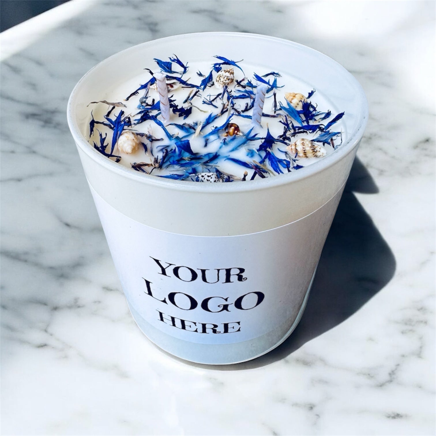 Our Soy Wax SEYCHELLES 30CL Candle, available in a 30CL Black or White Candle Glass with a twin wick. All our candles are hand-poured and uniquely hand-decorated with either crystal chips/crystals and herbs/flowers.